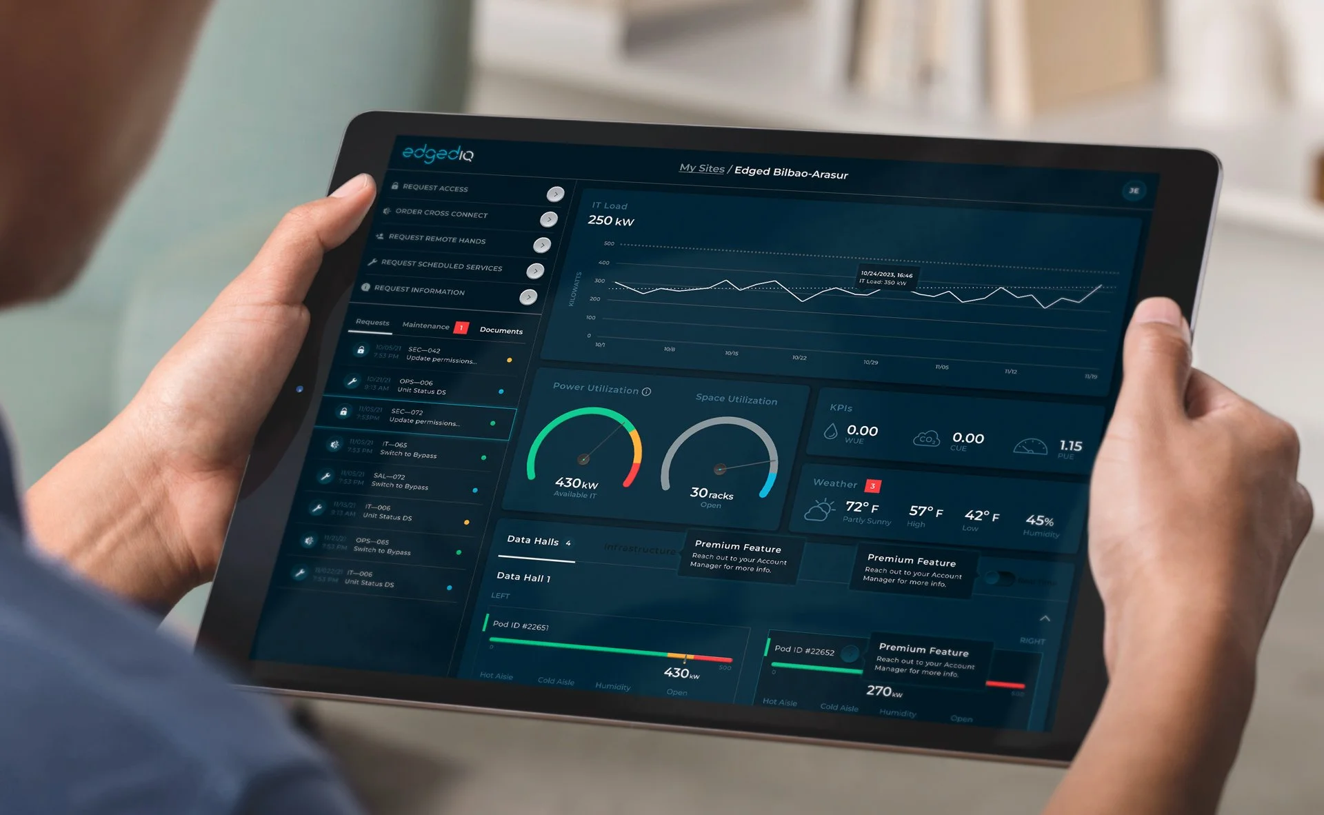 With EdgedIQ, customers have continuous access to key performance indicators, such as power consumption, water usage, and temperature, giving users the tools they need to operate their space safely, reliably, and efficiently.